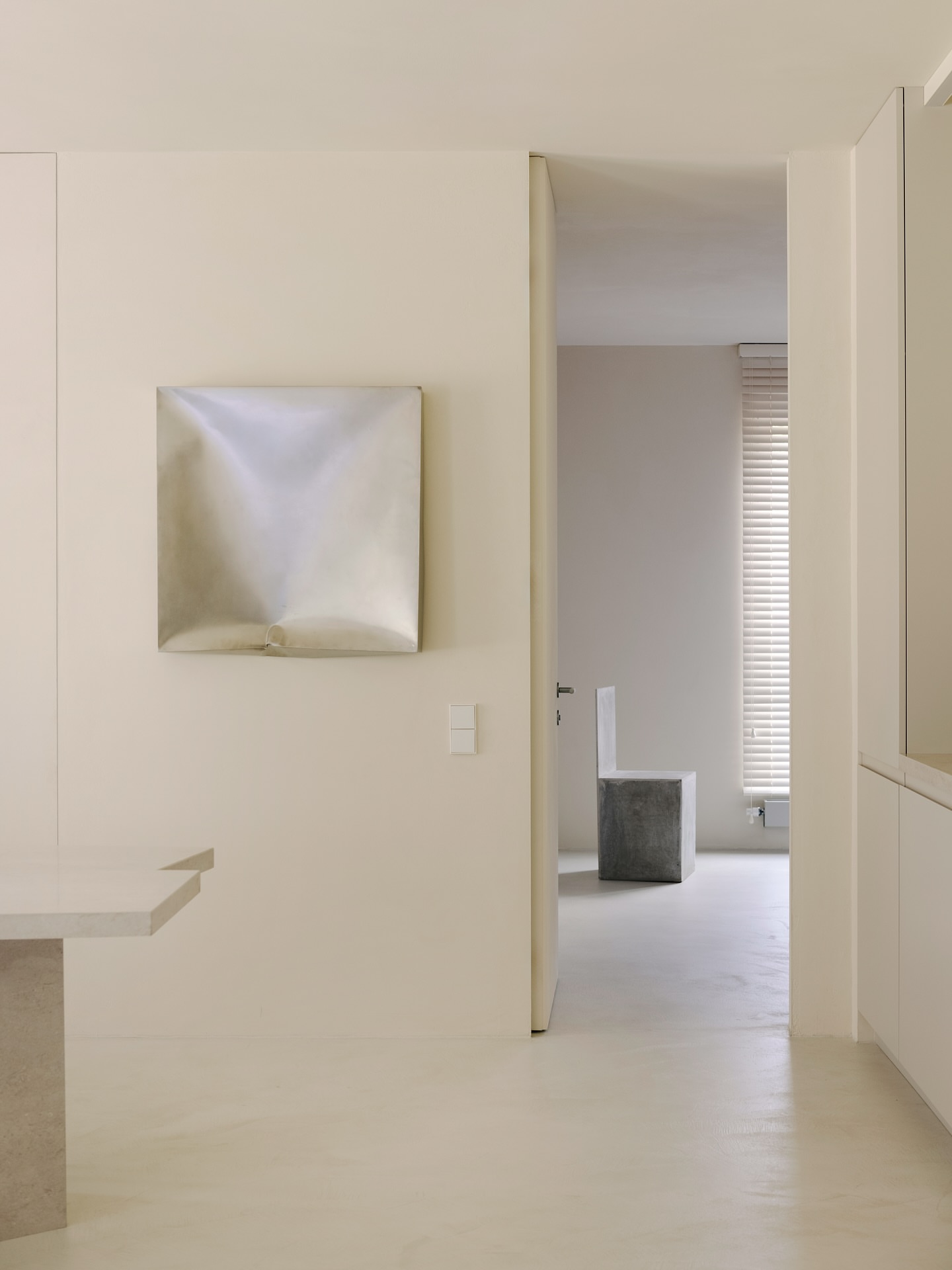 KM4724 Wedded Bliss它不是张扬的白,也非冷冽的灰,而是一层温润的、带着自然呼吸感的微光。像是晨间蒸腾的雾汽,又似掌心一杯醇厚燕麦奶,温柔包裹着整个空间,墙面在极简的轮廓下呈现出细腻的肌理。